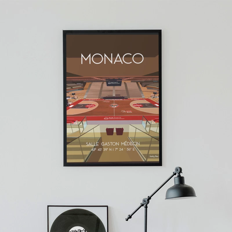 Cette affiche 100% Made in France a été imaginée et réalisée par Erwann, fondateur des affiches Wall of Fame, à Rennes en Bretagne. Elle est imprimée sur du papier blanc de qualité premium, et trouvera sa place dans la chambre ou le salon d’un Monégasque fan du club, ou de la nouvelle architecture de la salle.