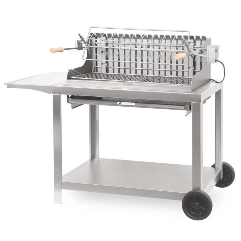 le barbecue en inox avec foyer vertical et horizontal et chariot Irissarry par Le Marquier.