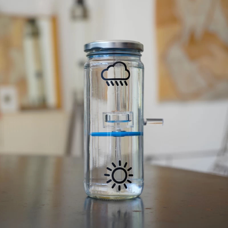 Disponible dans trois couleurs, le baromètre trouvera sa place facilement que ce soit dans votre cuisine, votre salon, ou même dans votre chambre ! Pour mettre en route le baromètre, il vous suffit d’ouvrir le bocal et de le remplir d’eau.