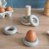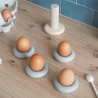 Les amoureux des œufs à la coque sont au bon endroit ! Le coq tient à vous faire découvrir ces coquetiers originaux en forme de bouée tout en béton 100 % minéral. D’un poids de 80g pièce, les coquetiers peuvent être rangés sur le support par un simple empilement, autour d’un axe en chêne massif. La forme des coquetiers rappelle celle des bouées dans lesquelles on aime tant se prélasser une fois les beaux jours venus.