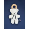 Conçu en Maïloudou, un tissu particulier d’une douceur absolue, il sera parfait. Il accompagnera votre enfant dans la joie et dans la tristesse… En plus, avec sa petite taille, il se glissera partout et même dans un petit sac pour qu’on puisse l’emmener avec nous en toute circonstance. Avec ses yeux en bille, son petit ruban bleu marine avec une inscription Maïlou, sa petite tête d’ours à croquer, vous allez fondre !