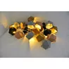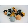 Une grande guirlande lumineuse avec des petits « abats-jours » en origami dans des coloris jaune moutarde, beige, gris et noir. Laissez libre cours à votre imagination pour placer cette guirlande : autour d’une plante, en tête de lit, sur une étagère…