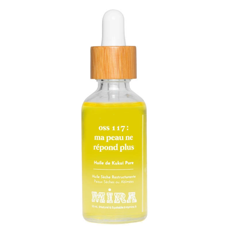 Découvrez vite l’huile végétale de kukui « OSS 117 : ma peau ne répond plus » de la marque Mira ! C’est une véritable perle rare, une huile couteau suisse. Vous pourrez l’utiliser pour le corps, les mains, le visage et les cheveux secs ou abimés. Vous verrez, elle va hydrater en profondeur.