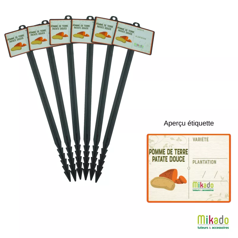 Le lot de 6 jalons pour pommes de terre et patates douces vous permettra d’identifier facilement quelles sont les pommes de terre que vous avez planté sur chaque ligne de votre jardin, ainsi que les patates douces, bien sûr !