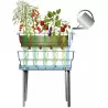 La jardinière sur pieds amovibles CALIPSO avec accessoires, MV Industrie. Un bac extérieur avec réserve d’eau (7L) pour les racines aquifères et un bac intérieur perforé pour les racines nourricières. Cheminée d’aération et d’arrosage latérale avec contrôle du niveau d’eau et système de trop plein. Tout ce qu’il vous faut pour réussir vos plantations !