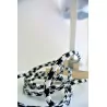 Abat-jour en carton bois : léger et très résistant, il est recouvert d’un vinyle marbre. Les bras sont en sapin brut, tandis que le socle est en pin. Le cablage est tissé en noir et blanc.