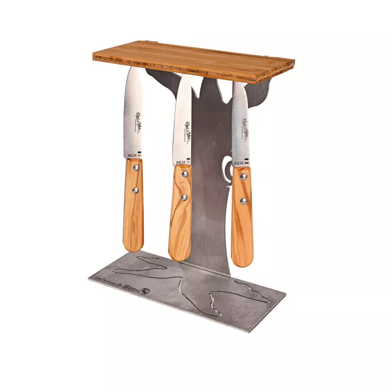 Le Lot de 3 couteaux et support aimanté arbre par Roger Orfèvre.