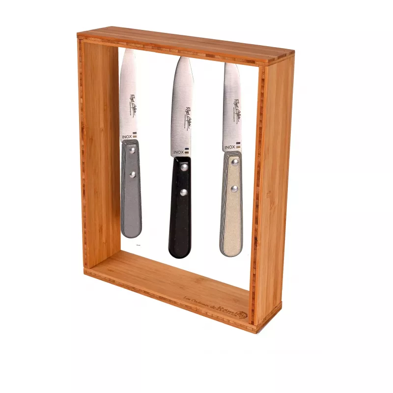 Le Lot de 3 couteaux et support aimanté en bambou par Roger Orfèvre.
