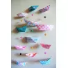 Chaque mobile Leewalia a 12 bateaux en origami : 4 grands et 8 petits. Ils sont montés sur des fils transparents accrochés à du bois flotté dont l’apparence peut varier selon le stock, par conséquent, les photos sont non contractuelles.