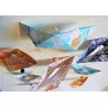 Chaque mobile Leewalia a 12 bateaux en origami : 4 grands et 8 petits. Ils sont montés sur des fils transparents accrochés à du bois flotté dont l’apparence peut varier selon le stock, par conséquent, les photos sont non contractuelles.