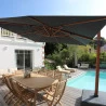 Ce parasol déporté, de grand format (3m sur 3m), est fabriqué uniquement avec des matériaux haut de gamme.