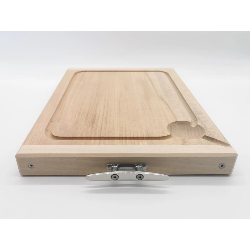 La partie permettant la découpe de vos mets préférés est fabriquée à partir d’un seul morceau de bois de hêtre massif, permettant ainsi d’avoir une planche qui durera dans le temps, pas comme certaines planches collées qui se fissurent au bout d’un mois d’utilisation.