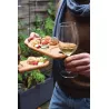 Cette planche est élégante et ingénieuse. Elle permet de disposer tartines, tapas et verrines d’un côté et de glisser son verre à pied de l’autre. Alors que chacun d’entre nous a déjà expérimenté le fameux « Mais où ai-je bien pu mettre mon verre ? », désormais votre précieux compagnon vous suit en toute élégance.