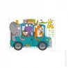 Les animaux de la jungle : l’éléphant, la girafe, le singe, l’hippopotame et les kangourous ont tous embarqué dans le bus pour un voyage à fond les ballons à travers la savane.