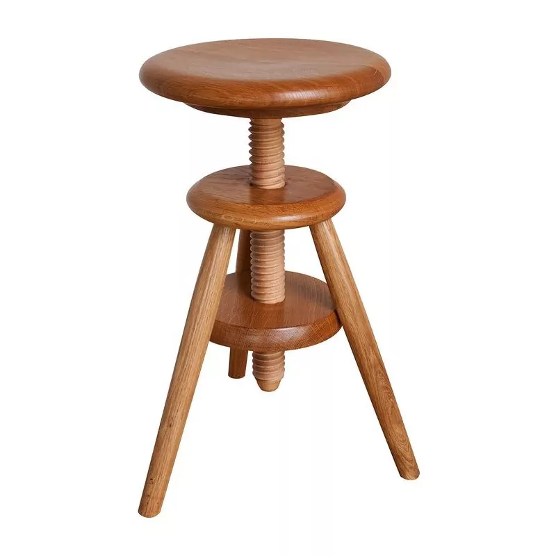 Réalisé en chêne massif de France dans les ateliers de Laurent Vuillemin dans le Haut-Doubs, ce siège permet de passer d’une hauteur d’assise de 50 à 70cm grâce à sa vis en bois, Son assise tournée à la main est légèrement creusée pour un confort optimum, une prise en main sous l’assise facilite le réglage de la hauteur. Son assise fait un diamètre de 30cm. C’est donc tout à fait légitimement qu’il rejoint notre gamme 100% Made in France.