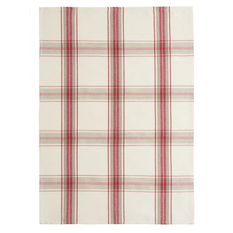 Découvrez un beau torchon de cuisine en tissu métis. C’est-à-dire qu’il mélange le lin et le coton. Ainsi, il bénéficie de la solidité du lin, mais aussi de la facilité d’entretien du coton, notamment pour le repassage. Il est tissé dans un motif classique Français avec de larges rayures rouges ou noires qui forment des carreaux sur un fond beige. Un torchon qui trouvera sa place dans toutes les bonnes cuisines !